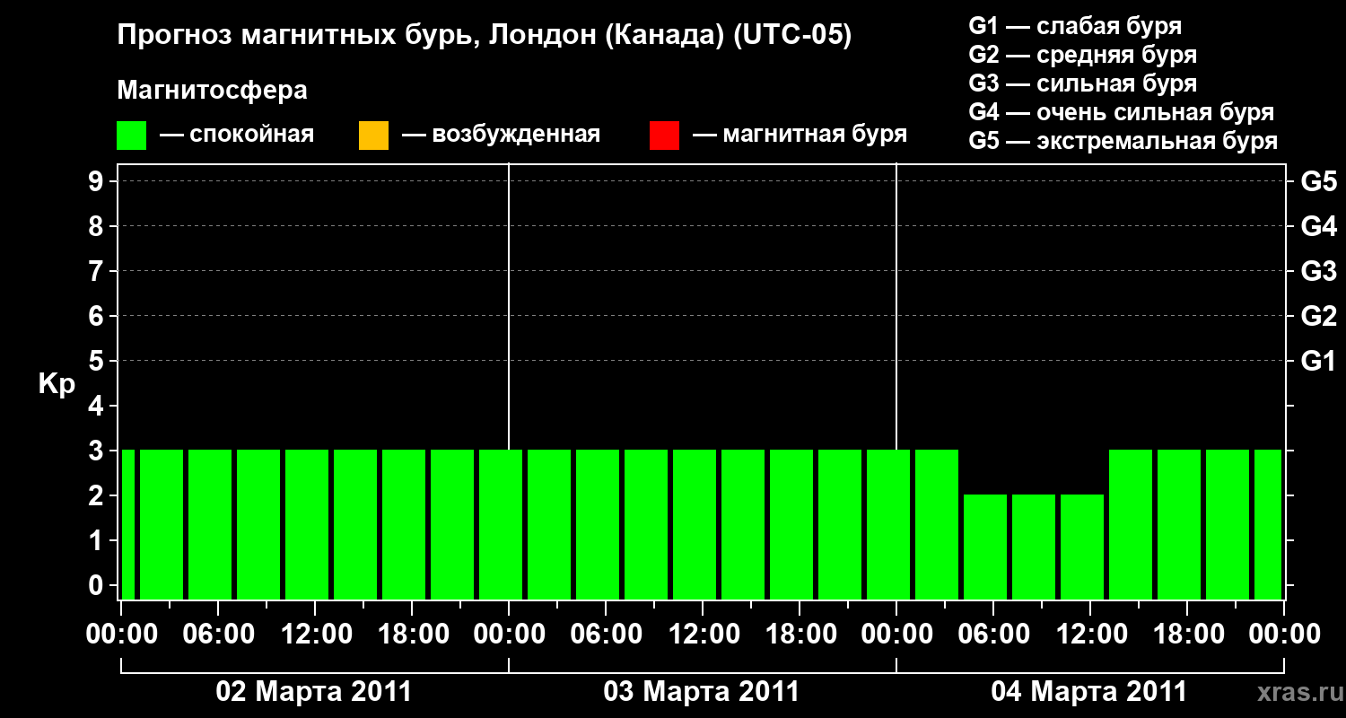 Прогноз магнитных бурь Лондоне (Канада) — 2 марта 2011 года