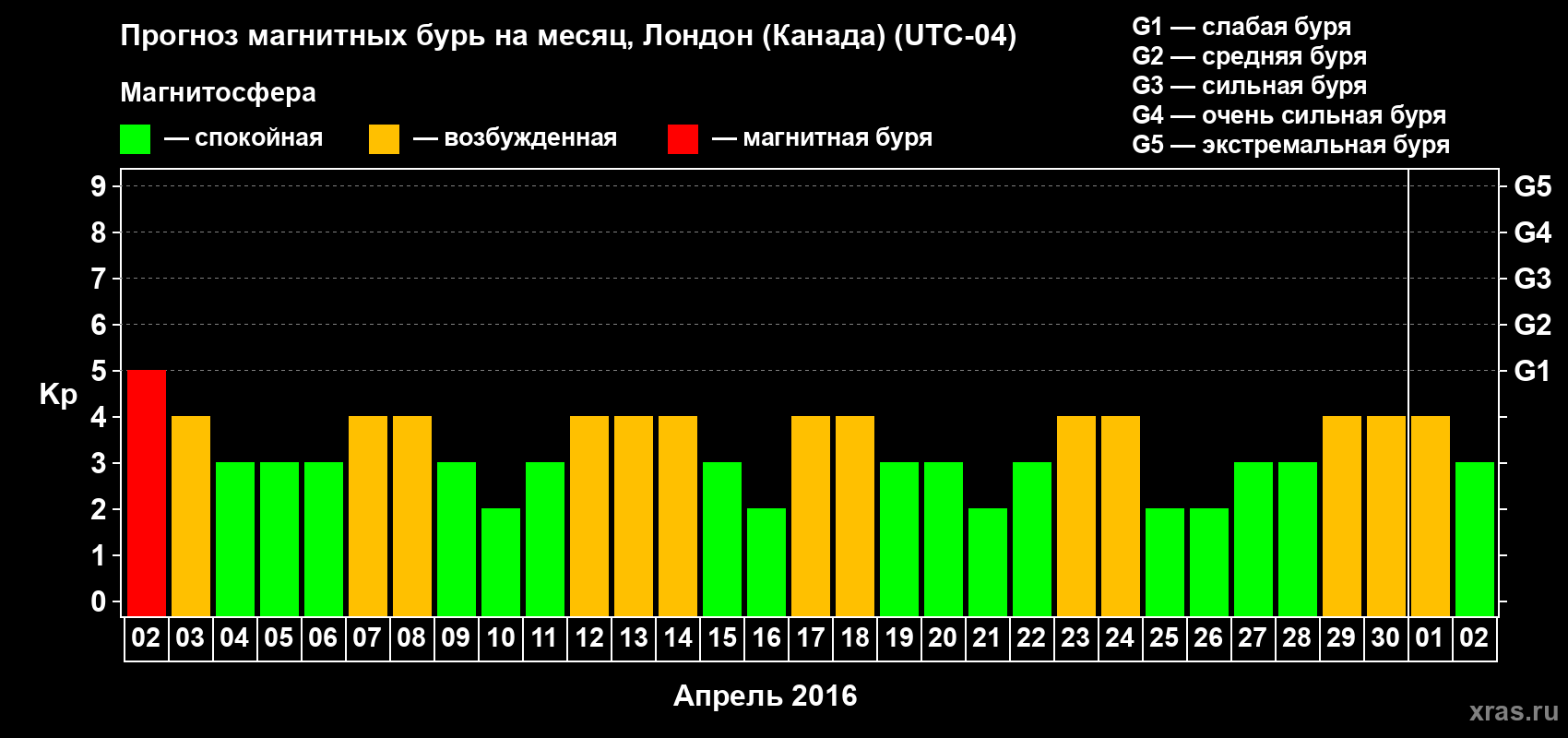 Прогноз магнитных бурь Лондоне (Канада) — 2 апреля 2016 года