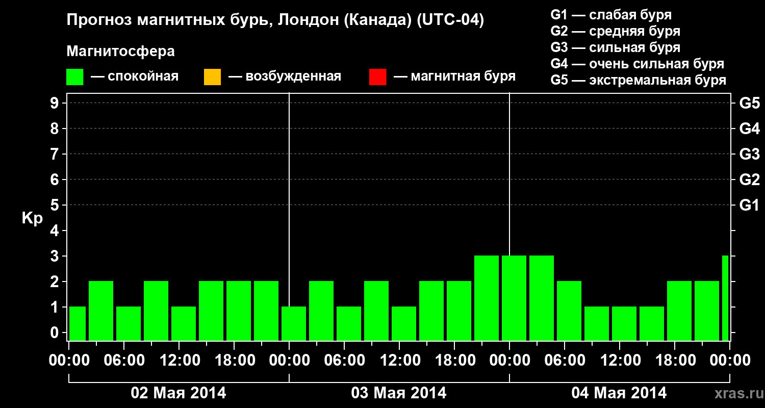 Прогноз магнитных бурь Лондоне (Канада) — 2 мая 2014 года