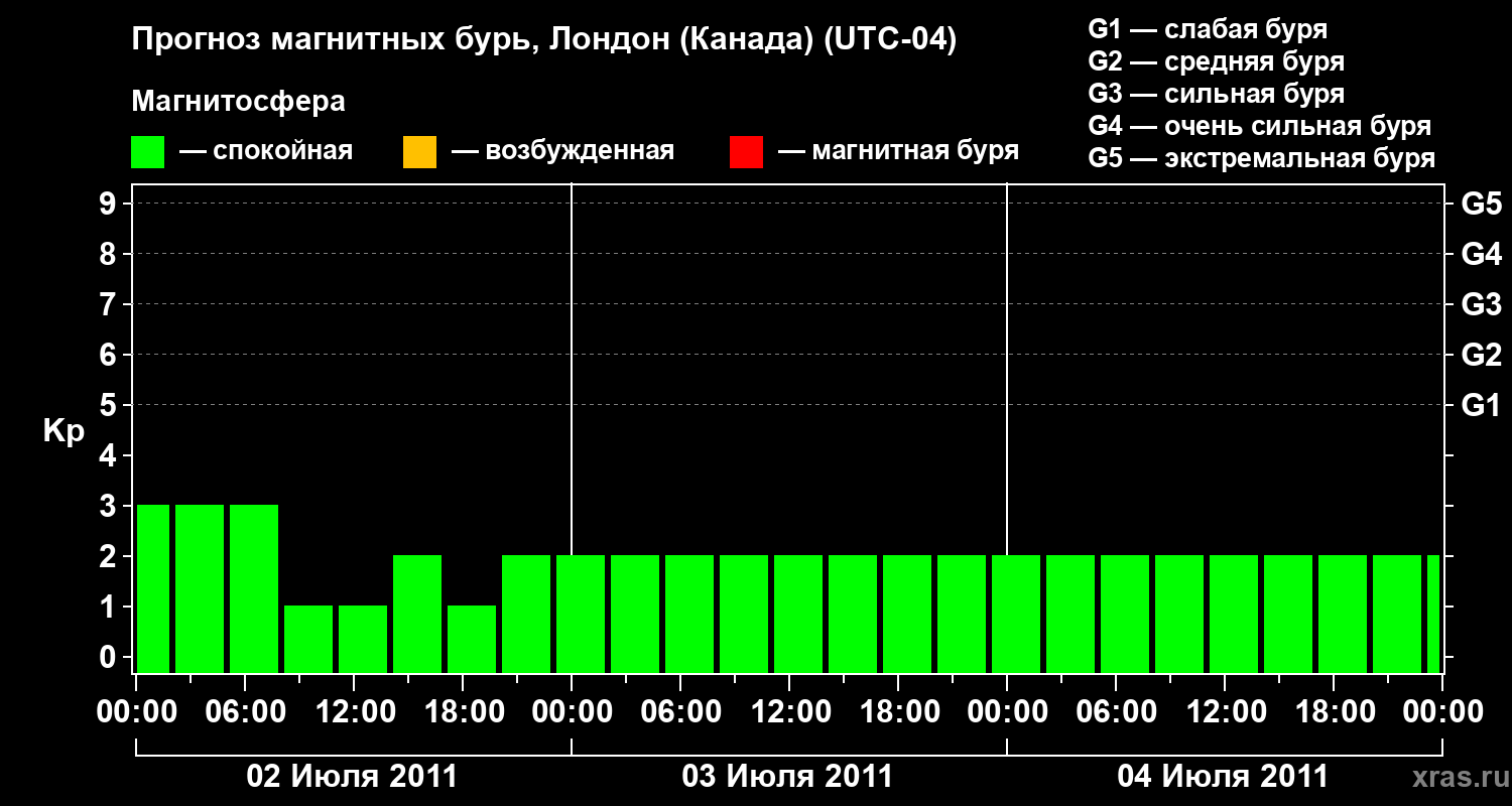 Прогноз магнитных бурь Лондоне (Канада) — 2 июля 2011 года