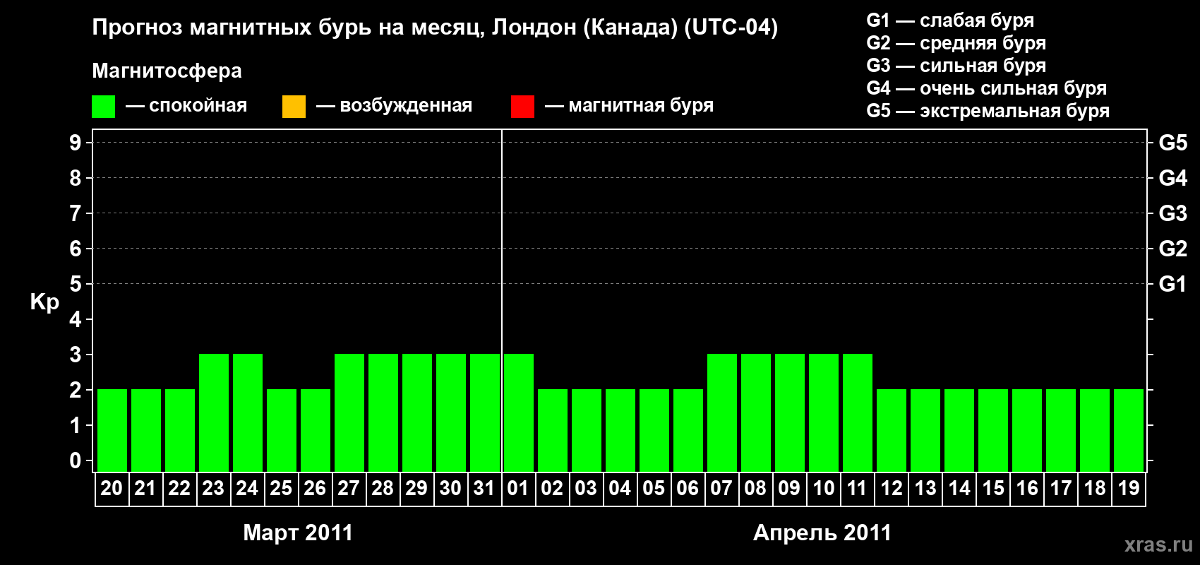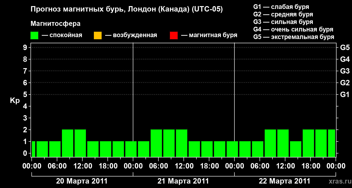 Прогноз магнитных бурь Лондоне (Канада) — 20 марта 2011 года