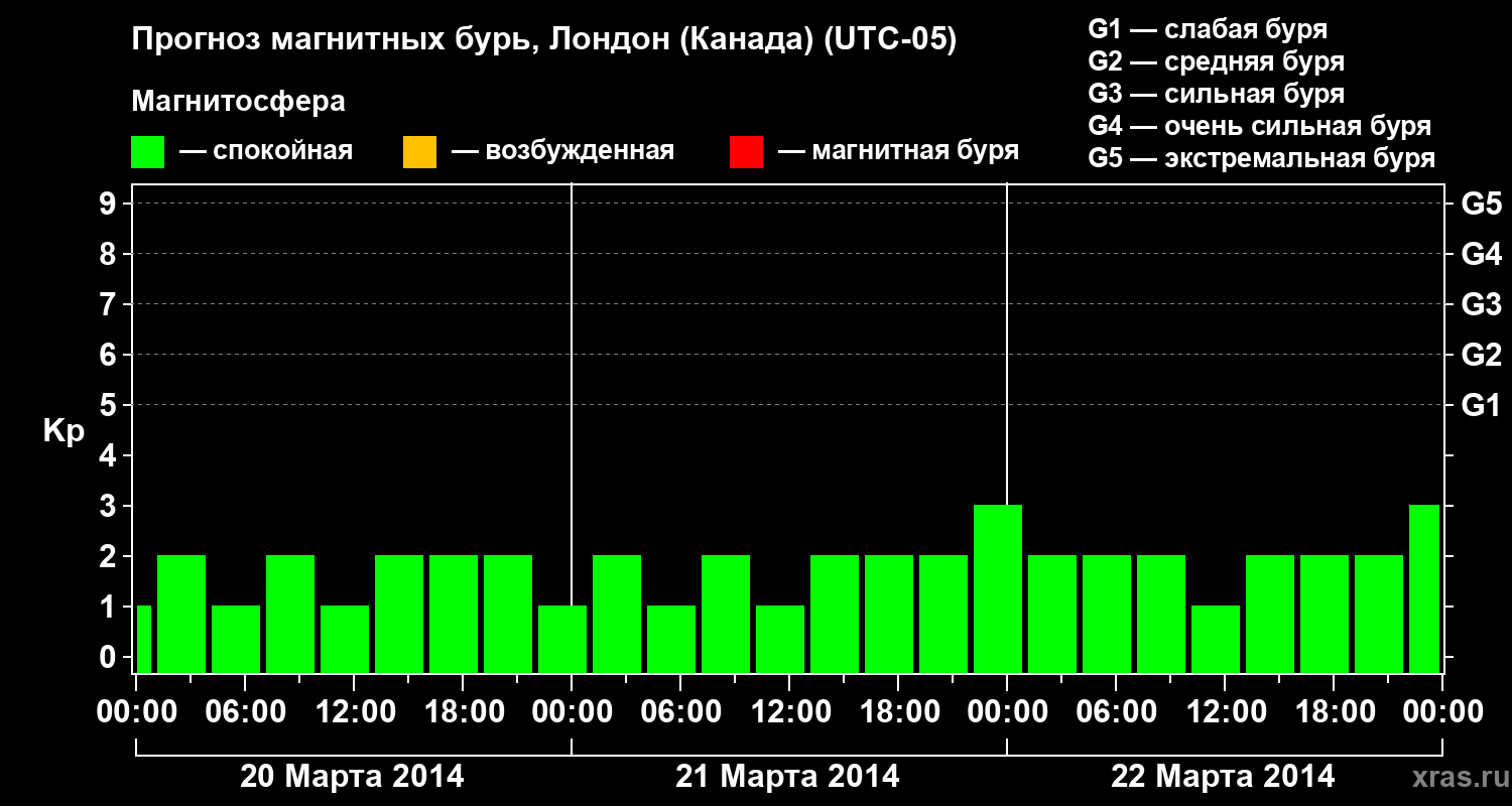 Прогноз магнитных бурь Лондоне (Канада) — 20 марта 2014 года