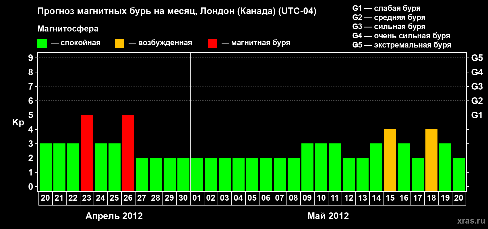 Прогноз магнитных бурь Лондоне (Канада) — 20 апреля 2012 года