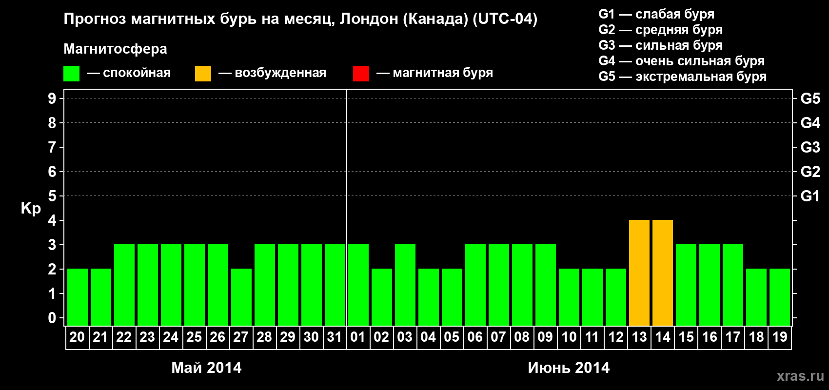 Прогноз магнитных бурь Лондоне (Канада) — 20 мая 2014 года