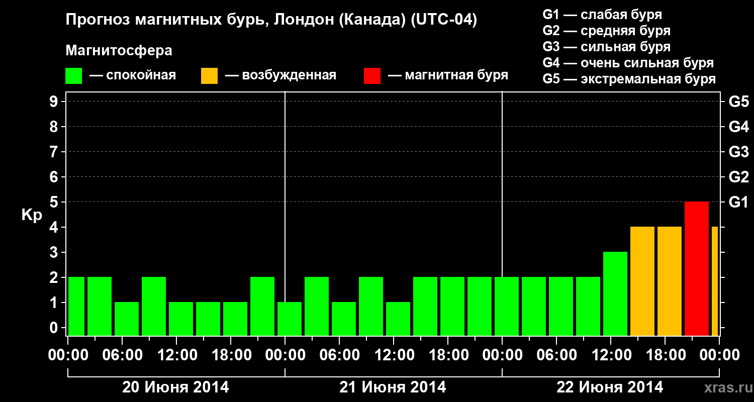 Прогноз магнитных бурь Лондоне (Канада) — 20 июня 2014 года