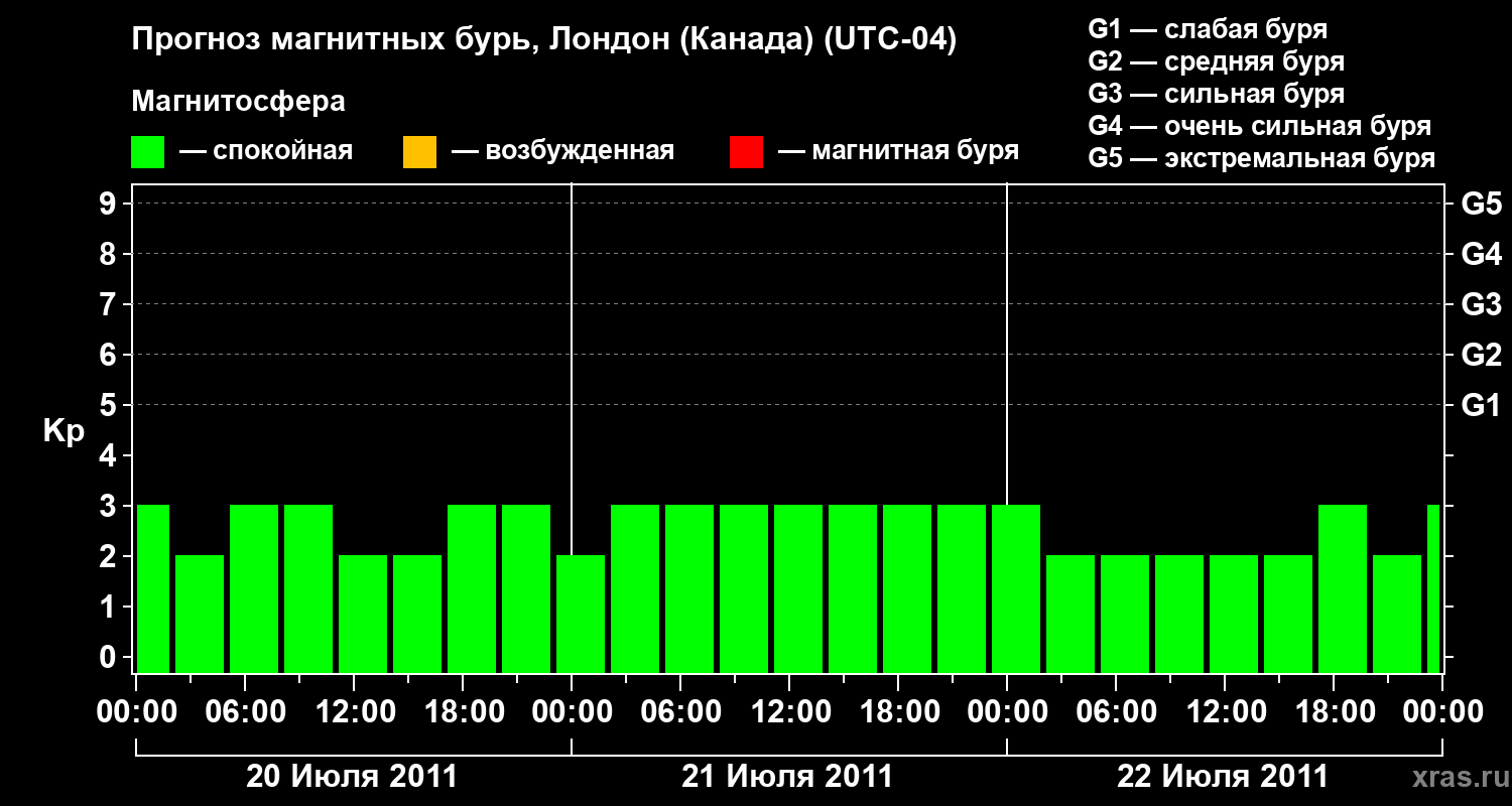 Прогноз магнитных бурь Лондоне (Канада) — 20 июля 2011 года