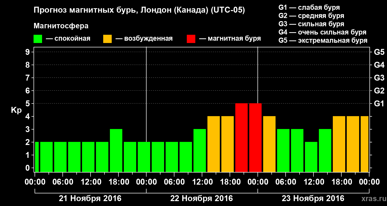 Прогноз магнитных бурь Лондоне (Канада) — 21 ноября 2016 года