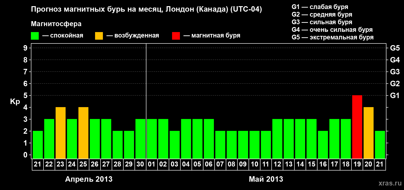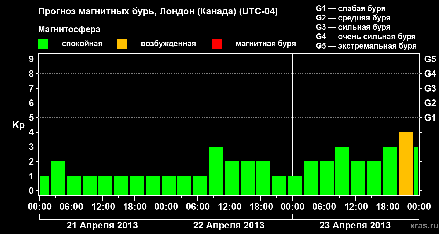 Прогноз магнитных бурь Лондоне (Канада) — 21 апреля 2013 года