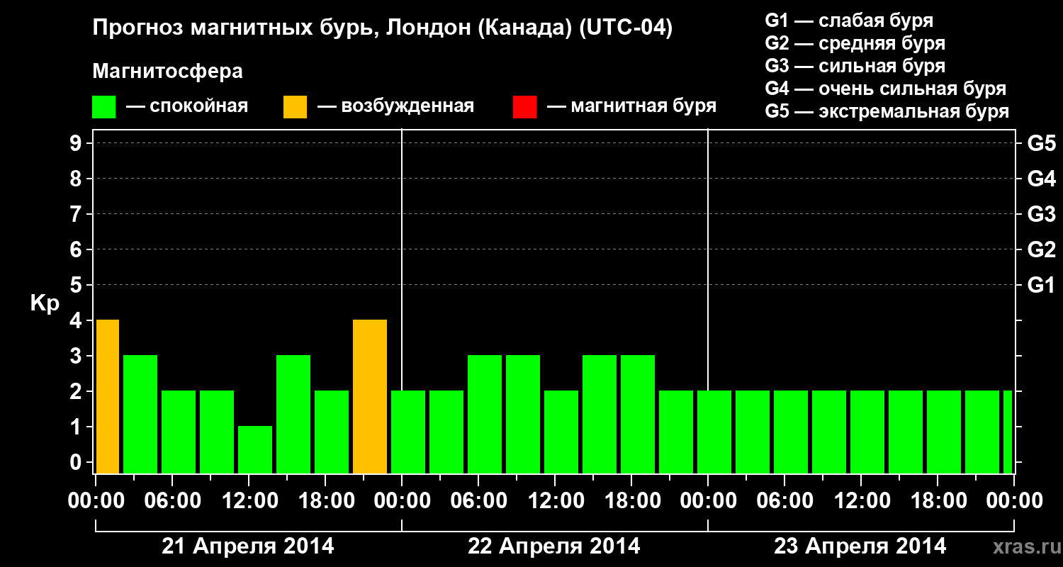 Прогноз магнитных бурь Лондоне (Канада) — 21 апреля 2014 года