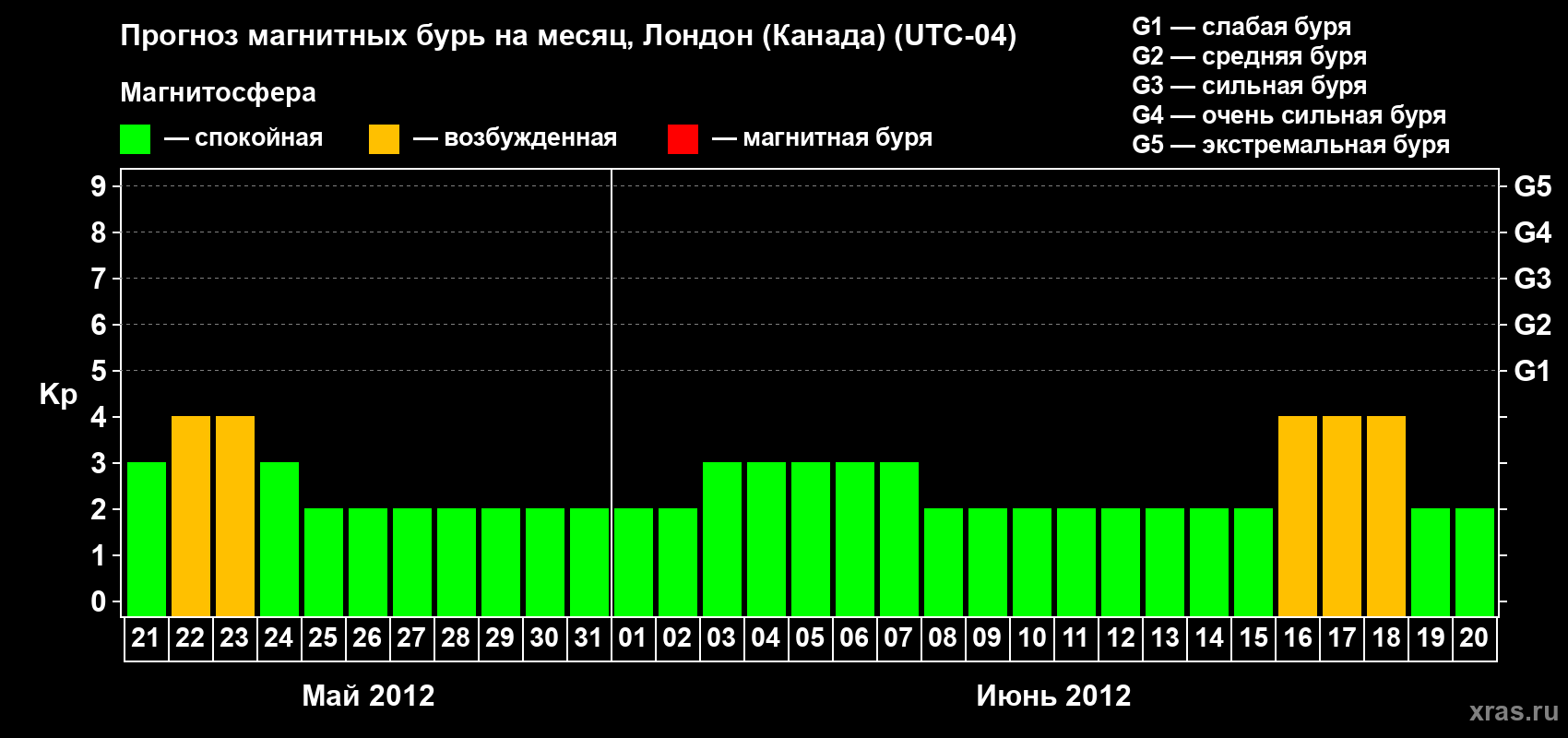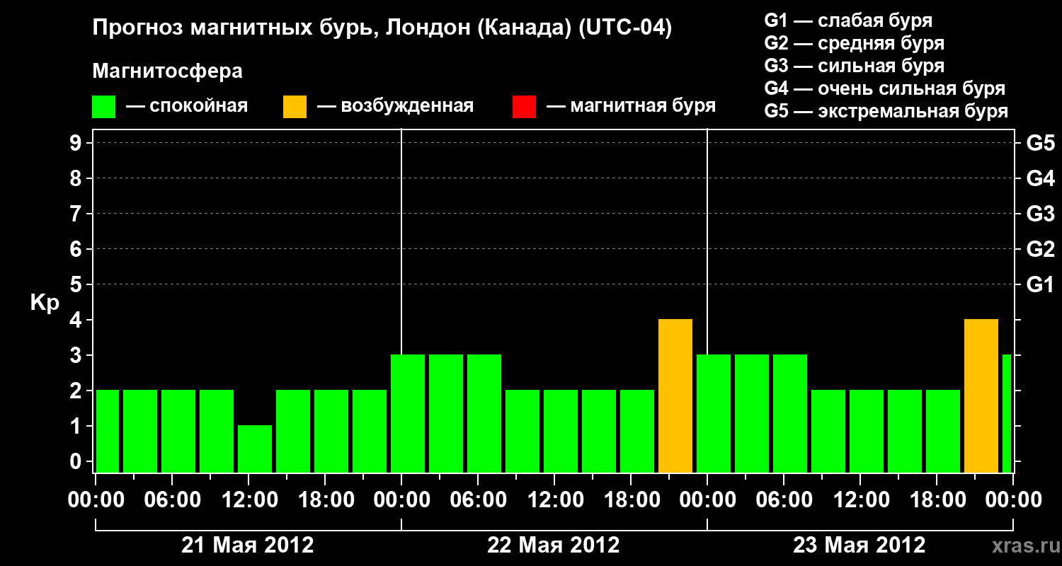 Прогноз магнитных бурь Лондоне (Канада) — 21 мая 2012 года