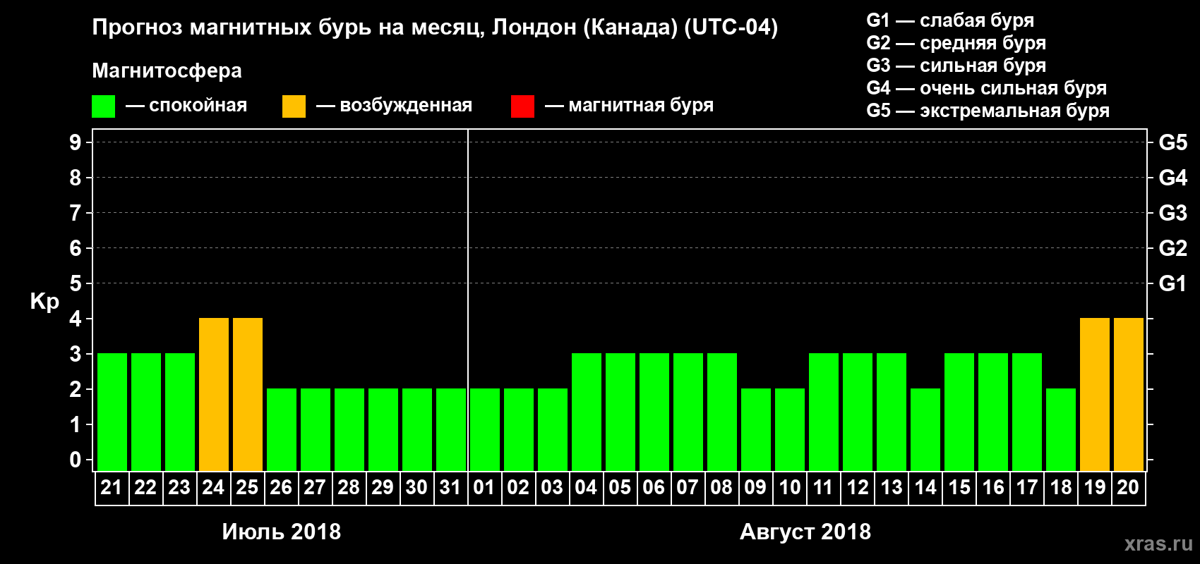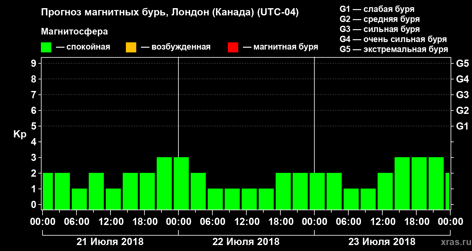 Прогноз магнитных бурь Лондоне (Канада) — 21 июля 2018 года
