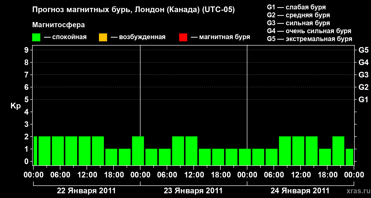 Прогноз магнитных бурь Лондоне (Канада) — 22 января 2011 года