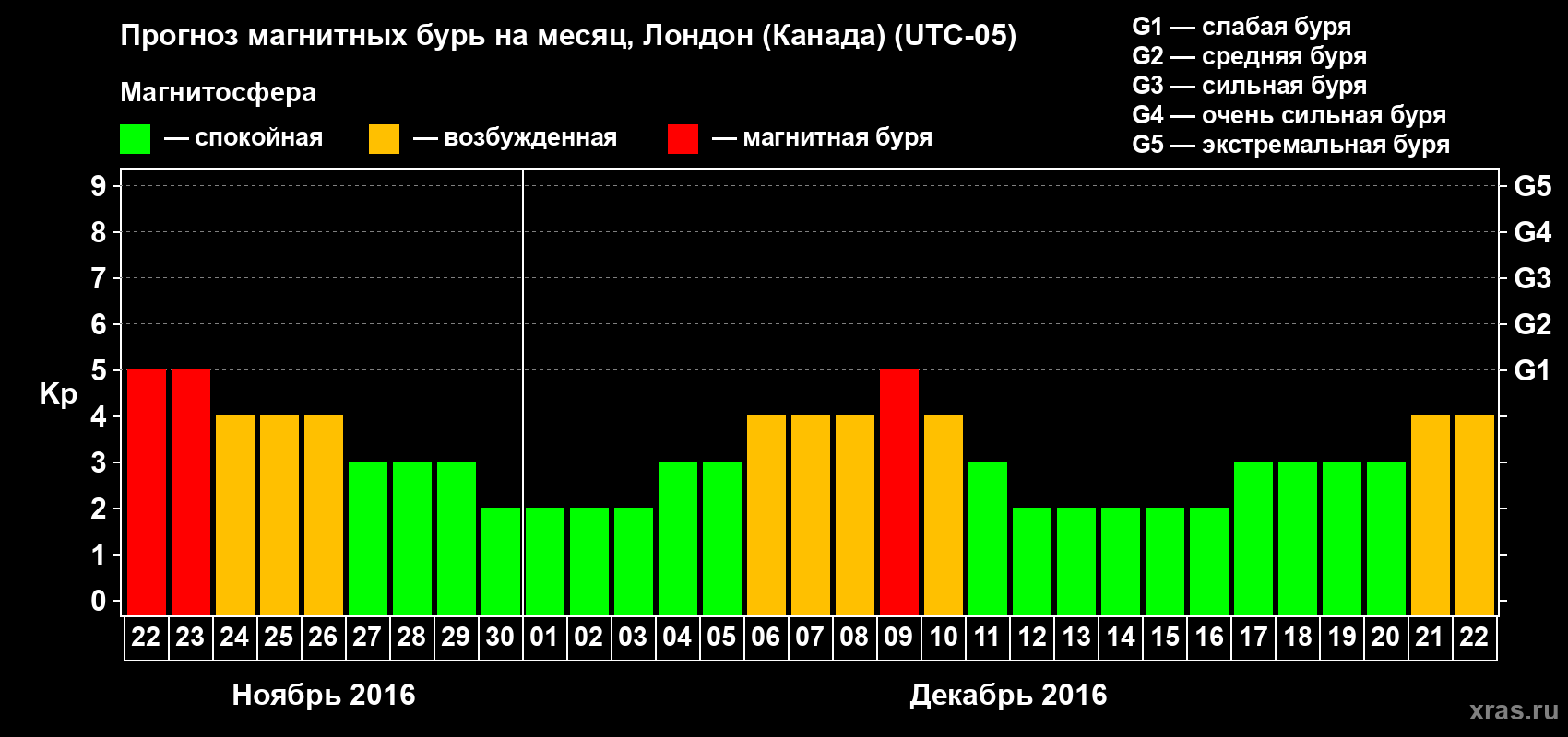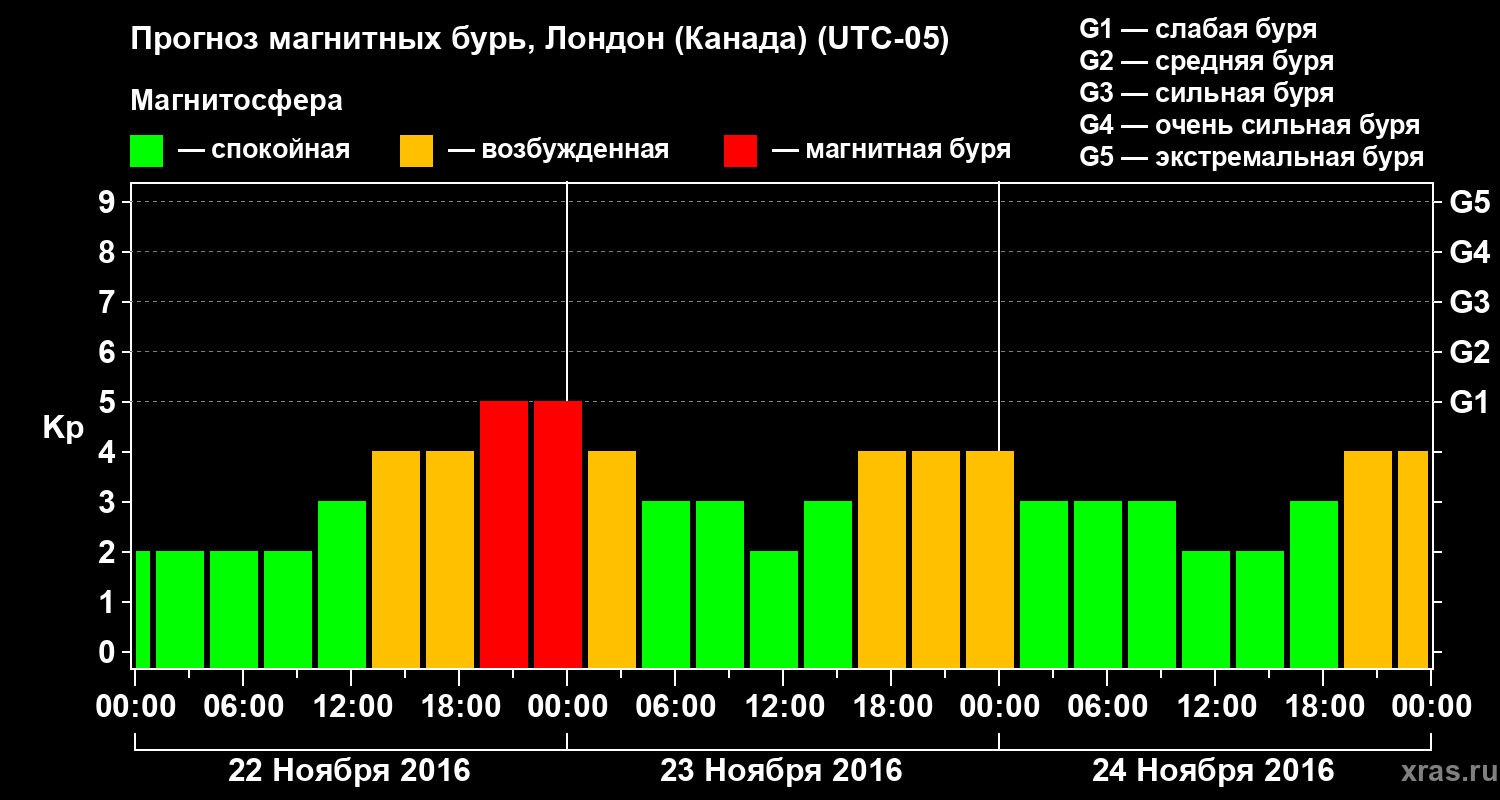Прогноз магнитных бурь Лондоне (Канада) — 22 ноября 2016 года