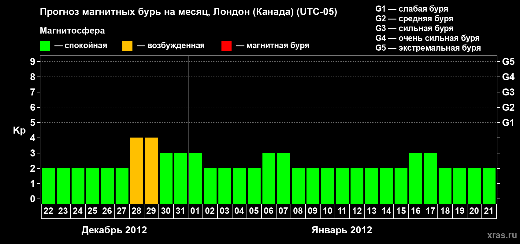 Прогноз магнитных бурь Лондоне (Канада) — 22 декабря 2011 года