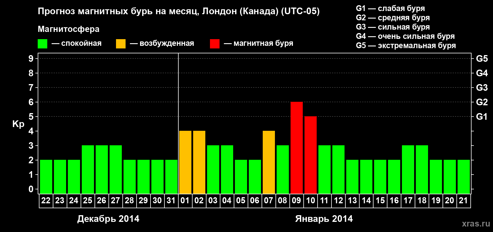Прогноз магнитных бурь Лондоне (Канада) — 22 декабря 2013 года