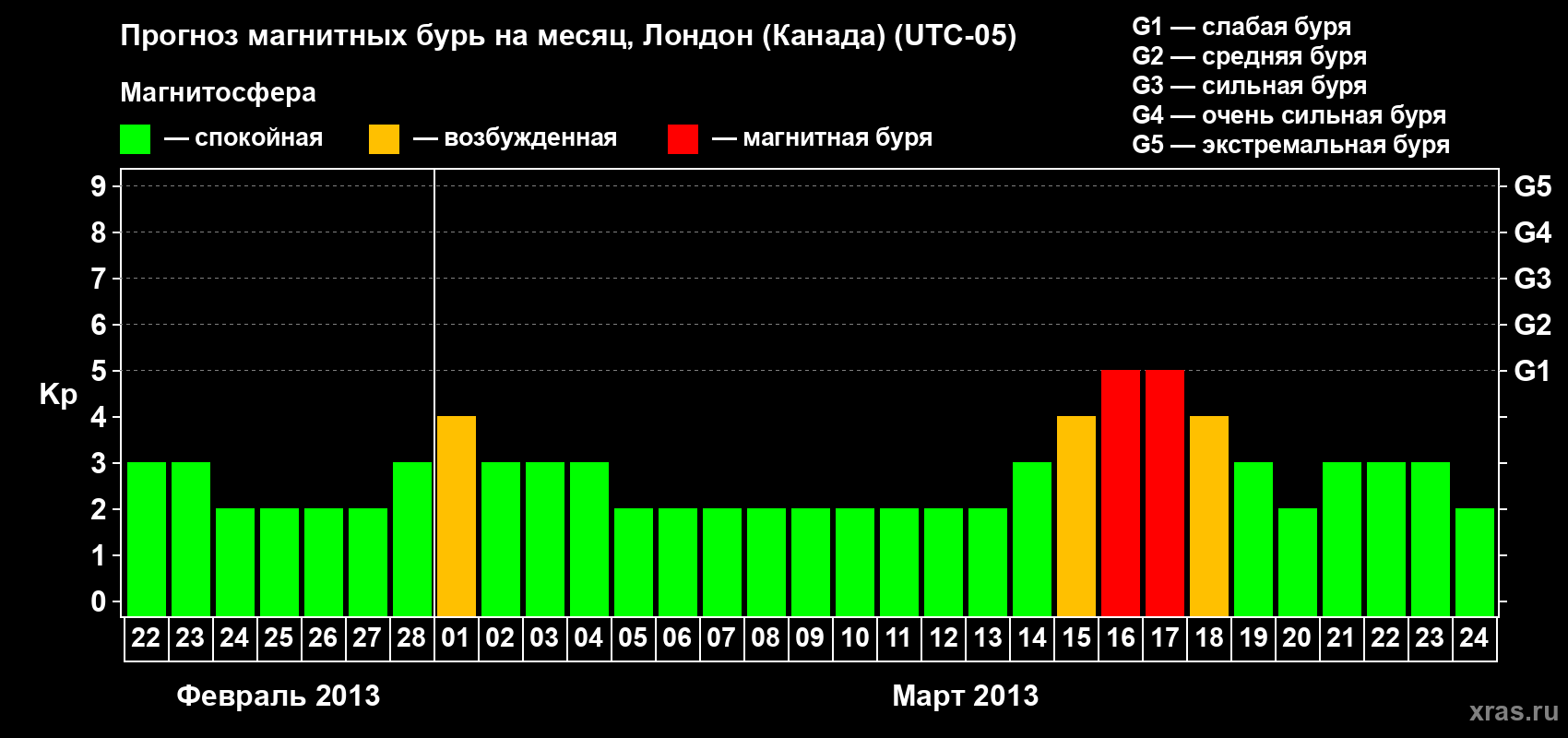 Прогноз магнитных бурь Лондоне (Канада) — 22 февраля 2013 года