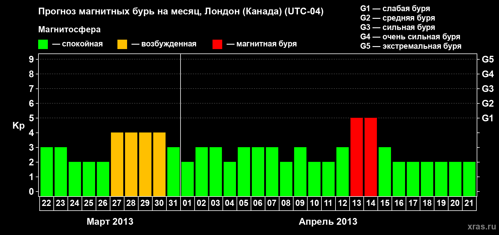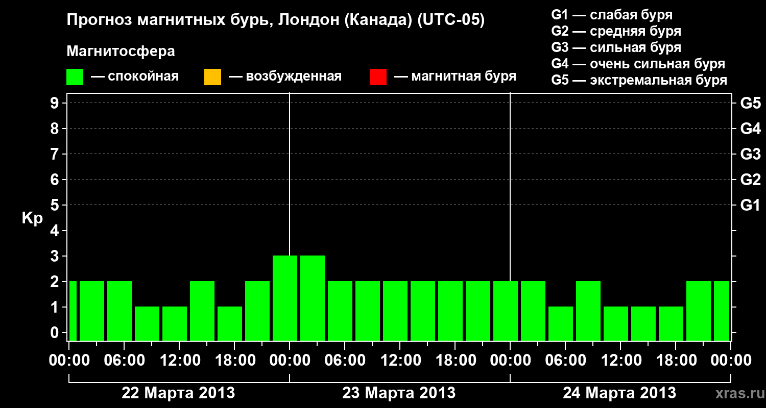 Прогноз магнитных бурь Лондоне (Канада) — 22 марта 2013 года