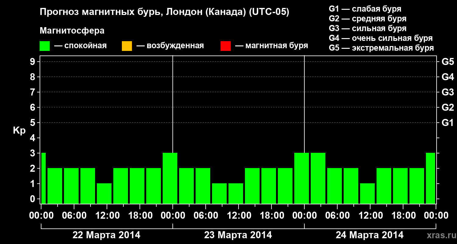 Прогноз магнитных бурь Лондоне (Канада) — 22 марта 2014 года