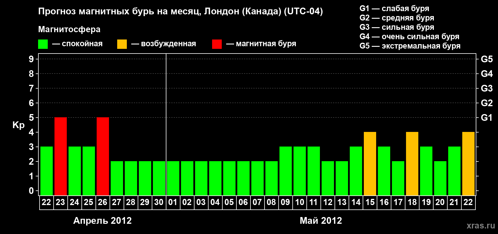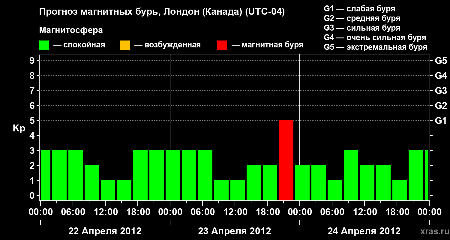 Прогноз магнитных бурь Лондоне (Канада) — 22 апреля 2012 года