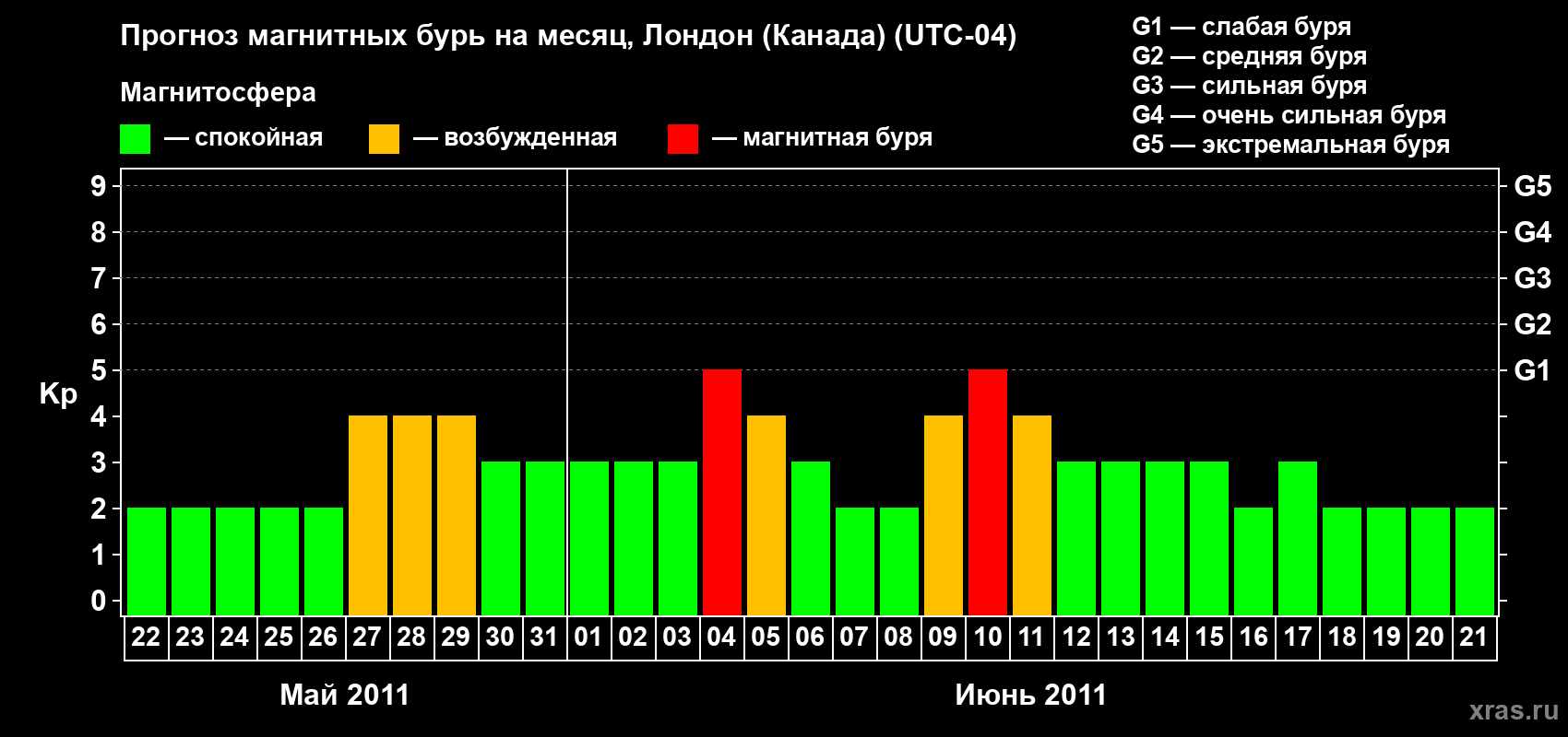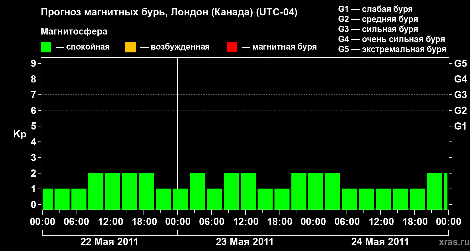 Прогноз магнитных бурь Лондоне (Канада) — 22 мая 2011 года