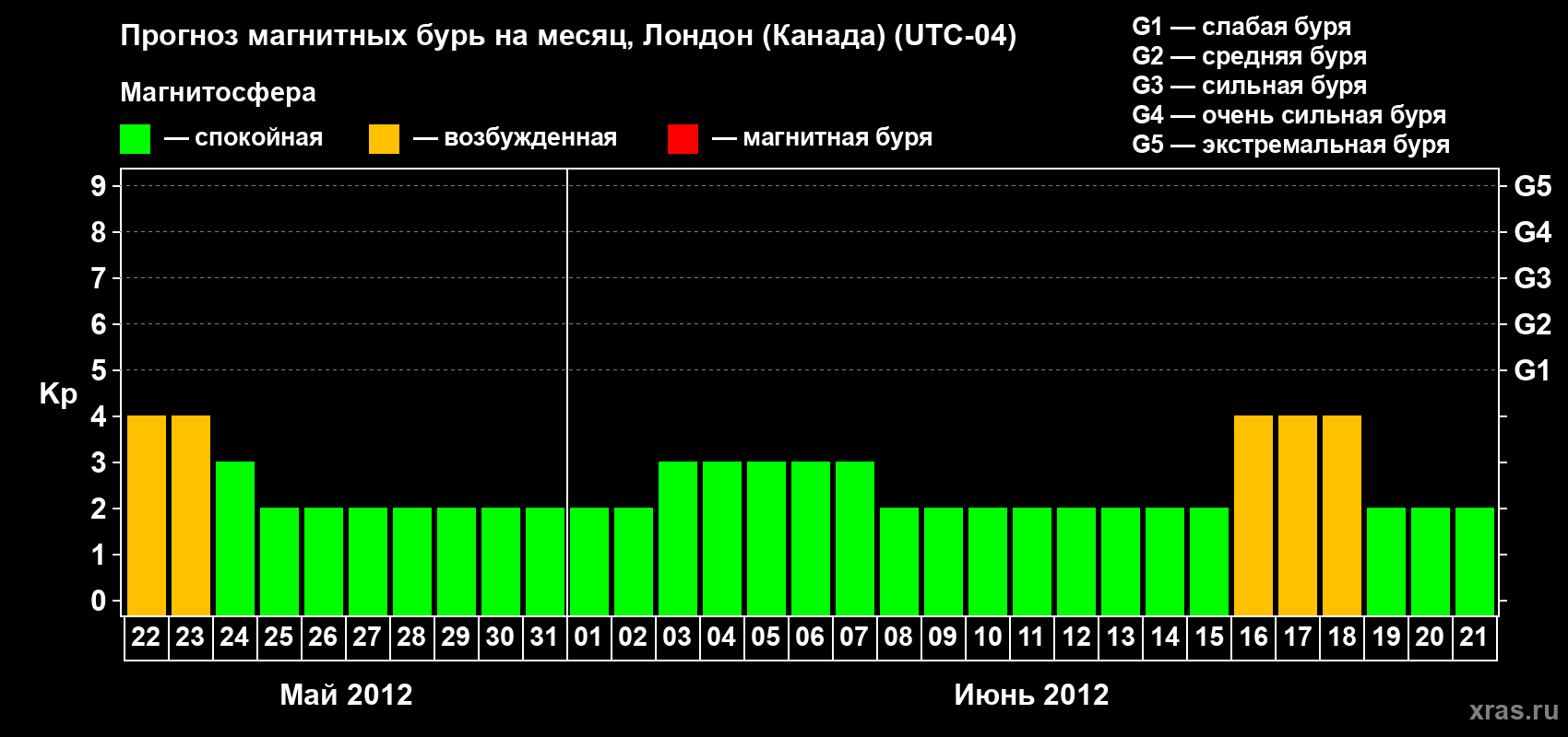 Прогноз магнитных бурь Лондоне (Канада) — 22 мая 2012 года