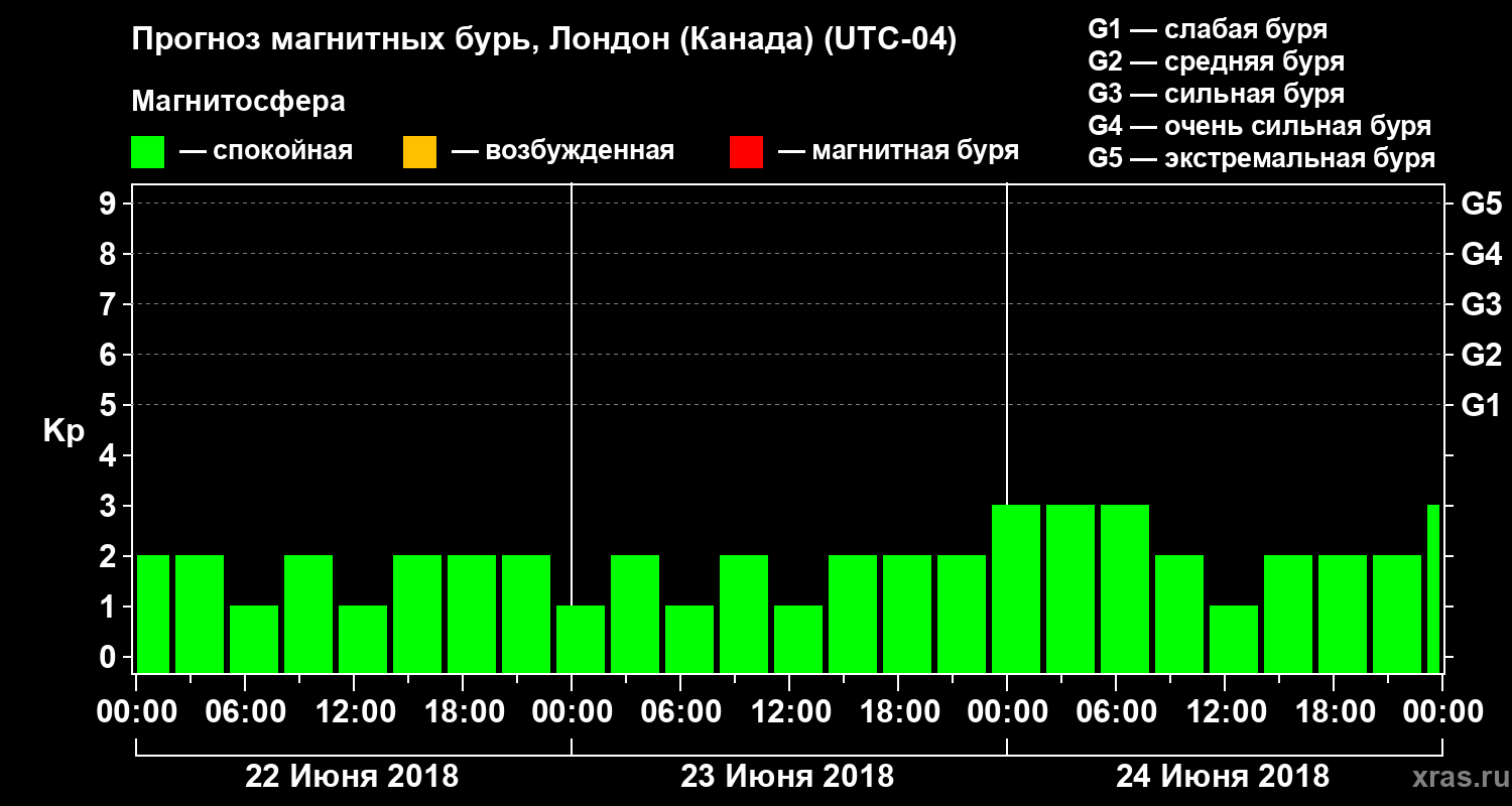 Прогноз магнитных бурь Лондоне (Канада) — 22 июня 2018 года