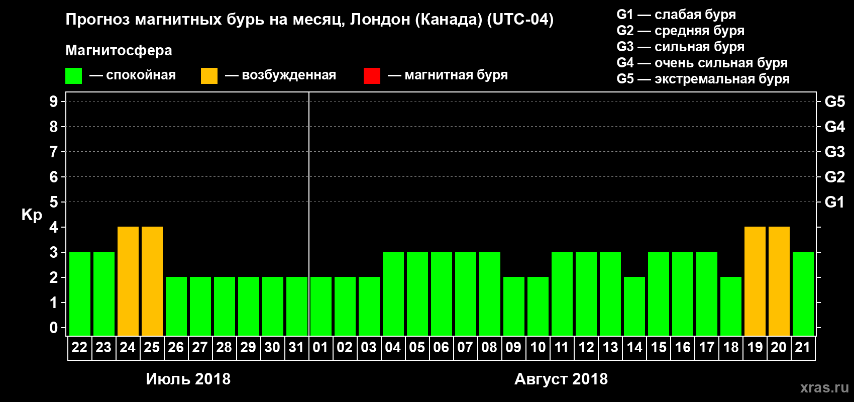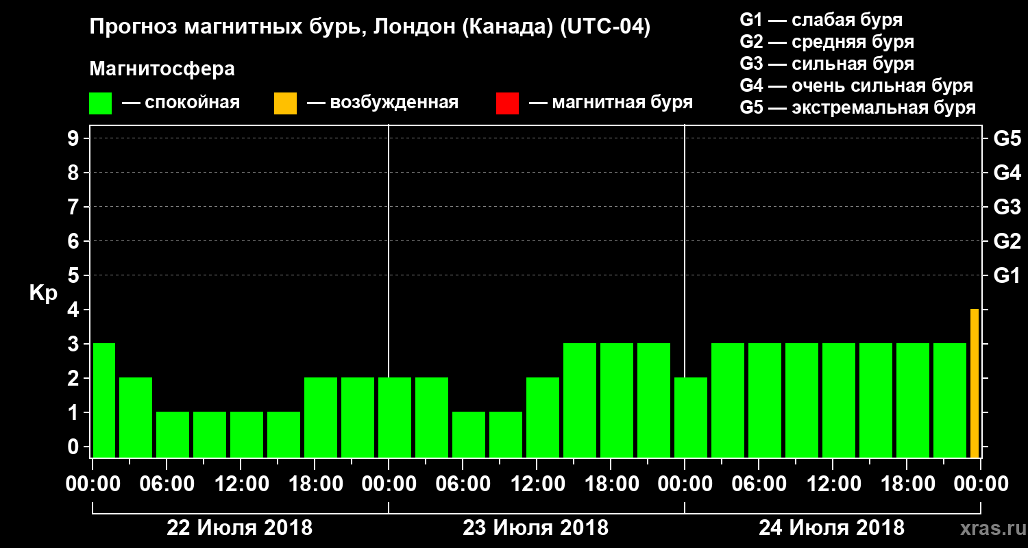 Прогноз магнитных бурь Лондоне (Канада) — 22 июля 2018 года