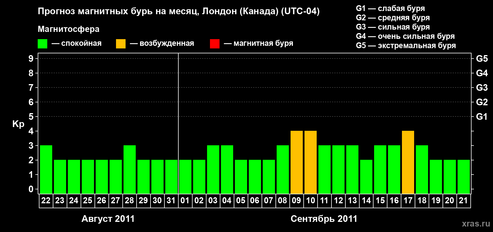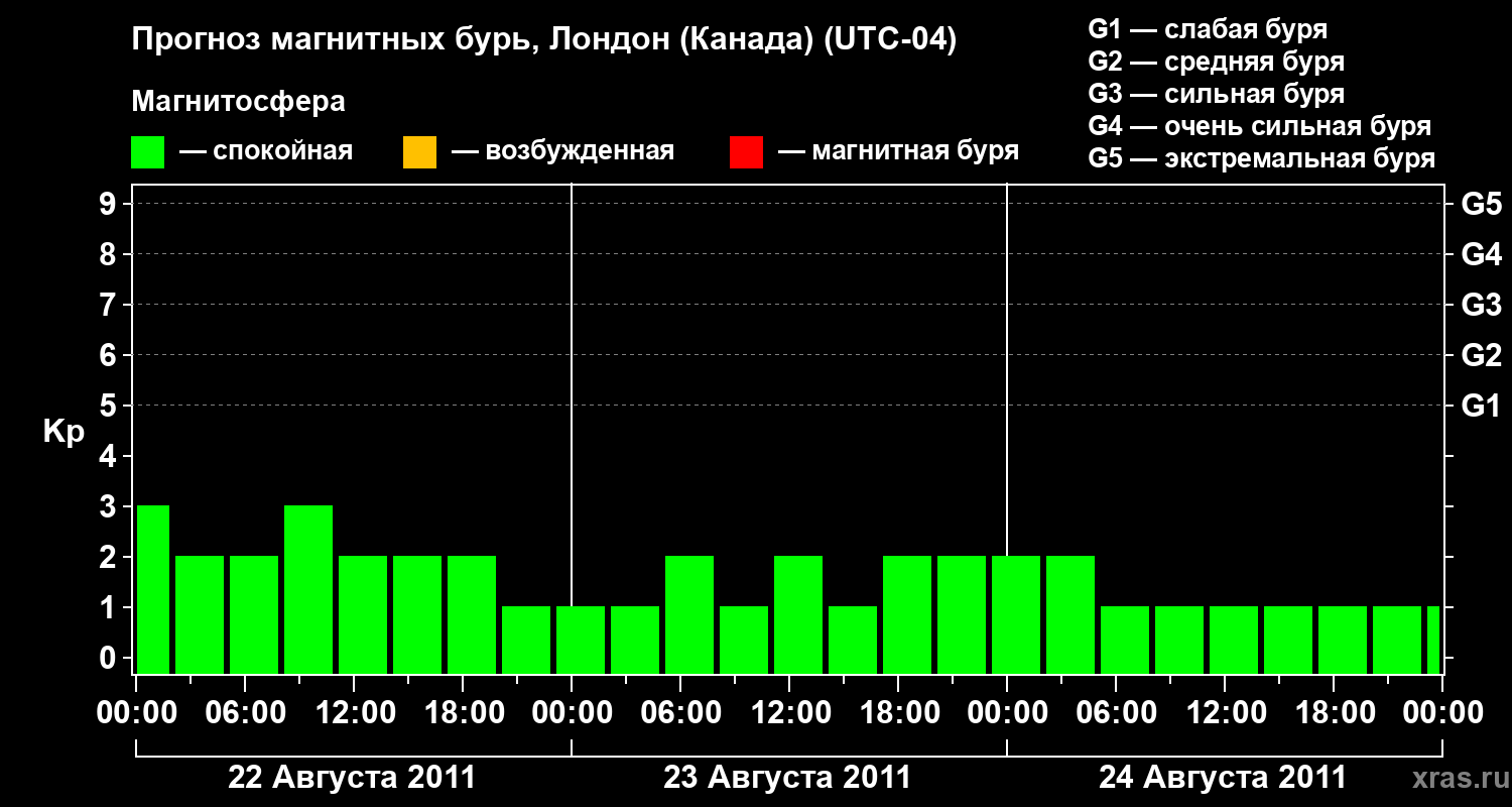 Прогноз магнитных бурь Лондоне (Канада) — 22 августа 2011 года