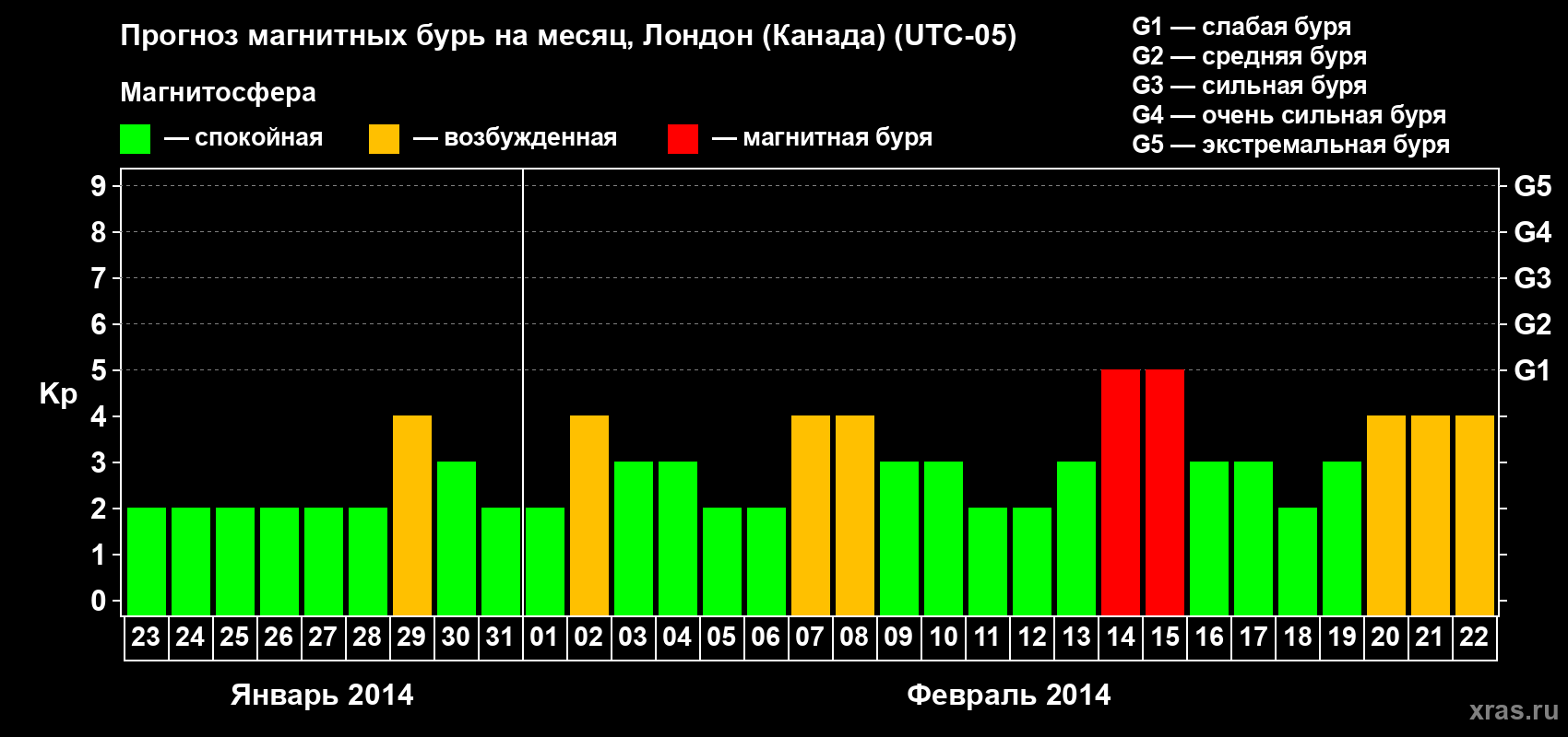Прогноз магнитных бурь Лондоне (Канада) — 23 января 2014 года