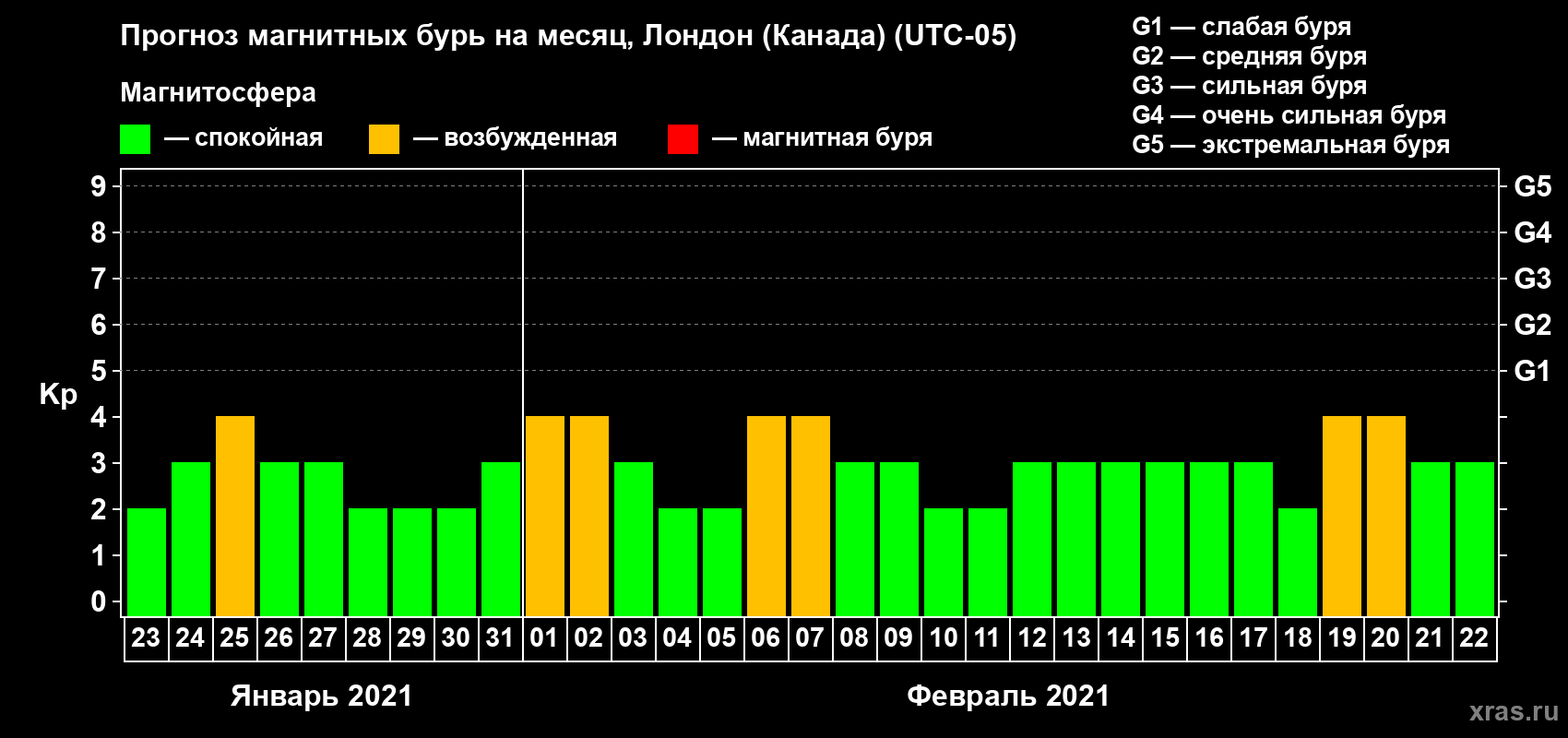 Прогноз магнитных бурь Лондоне (Канада) — 23 января 2021 года
