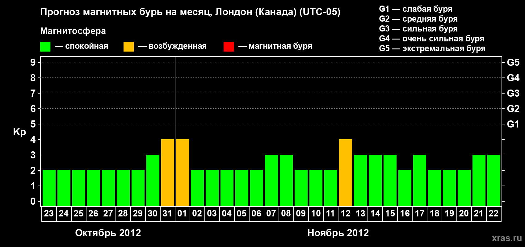 Прогноз магнитных бурь Лондоне (Канада) — 23 октября 2012 года