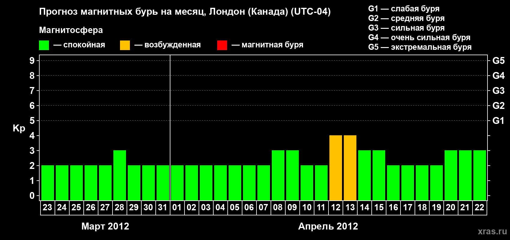 Прогноз магнитных бурь Лондоне (Канада) — 23 марта 2012 года