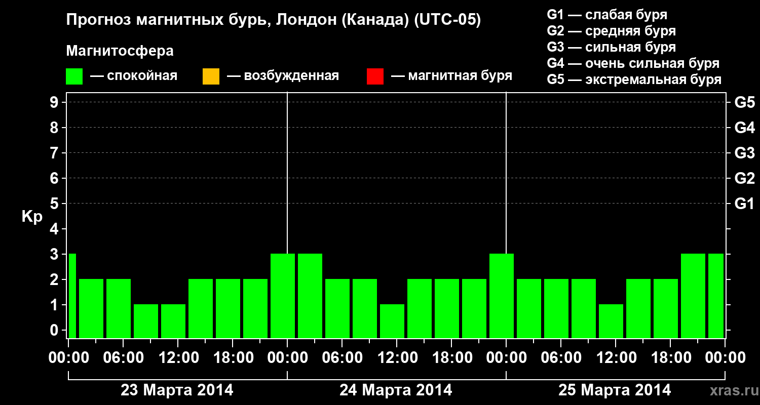 Прогноз магнитных бурь Лондоне (Канада) — 23 марта 2014 года