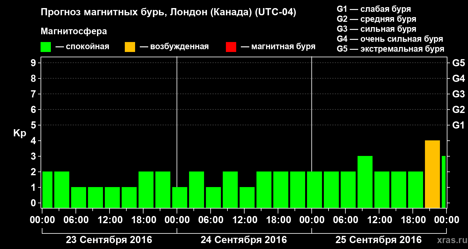 Прогноз магнитных бурь Лондоне (Канада) — 23 сентября 2016 года