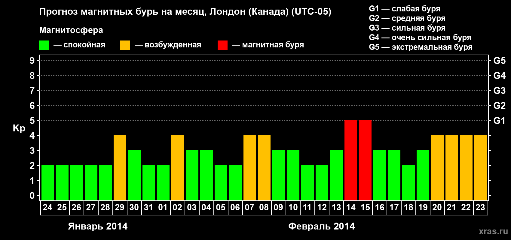 Прогноз магнитных бурь Лондоне (Канада) — 24 января 2014 года