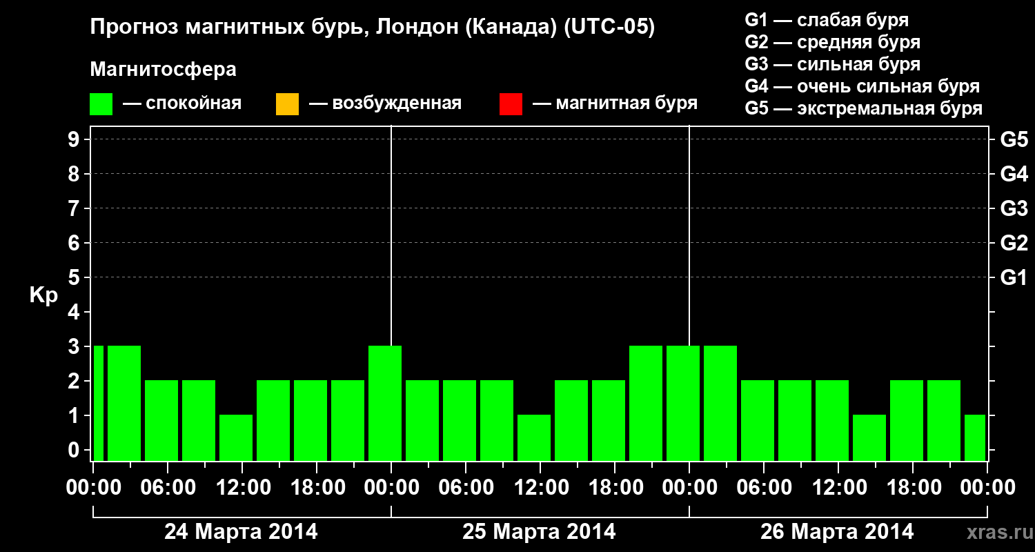 Прогноз магнитных бурь Лондоне (Канада) — 24 марта 2014 года