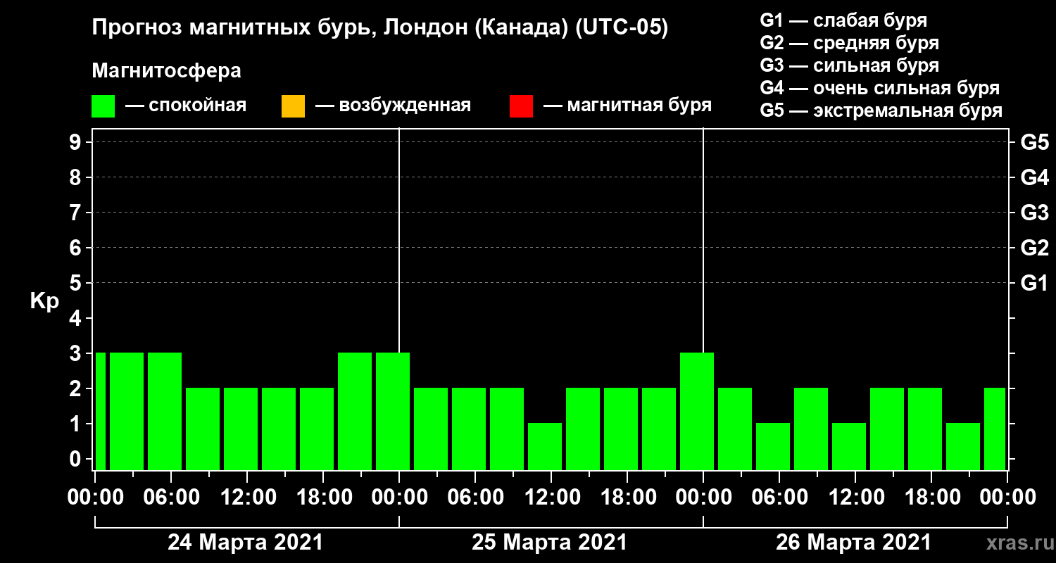 Прогноз магнитных бурь Лондоне (Канада) — 24 марта 2021 года
