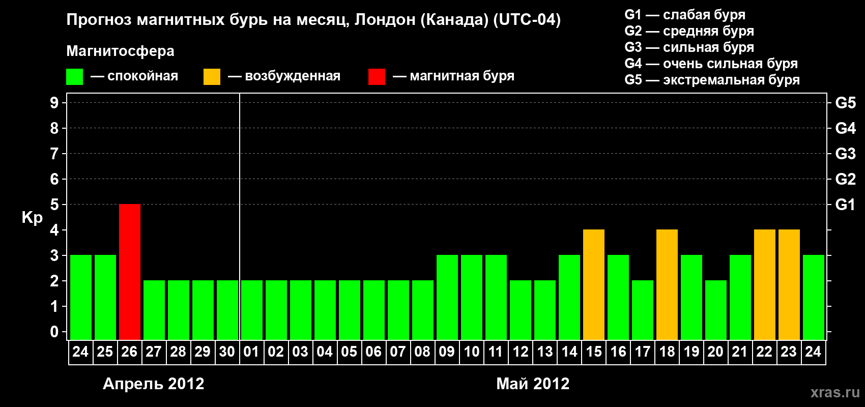Прогноз магнитных бурь Лондоне (Канада) — 24 апреля 2012 года