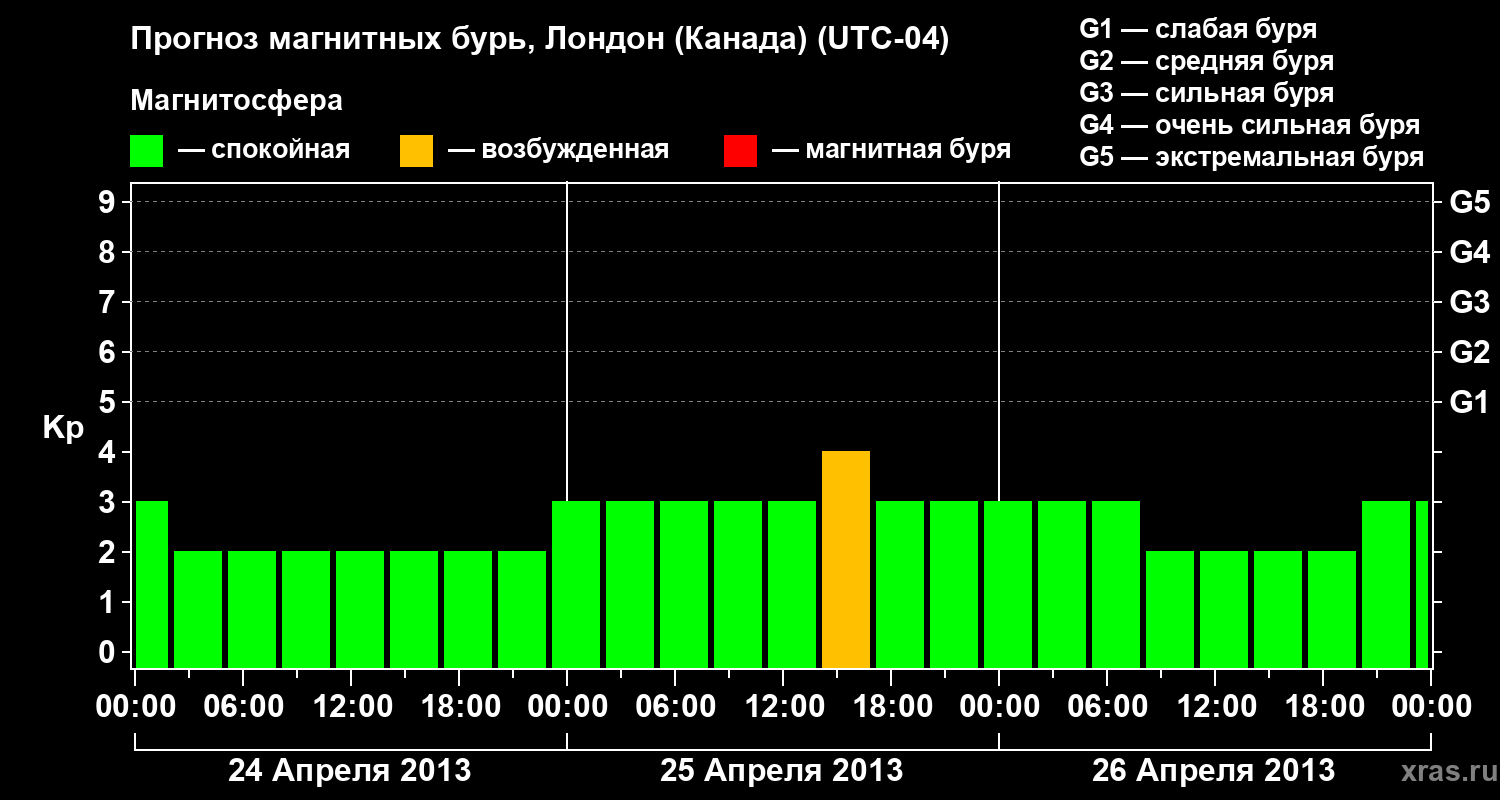 Прогноз магнитных бурь Лондоне (Канада) на 24 апреля 2013 года