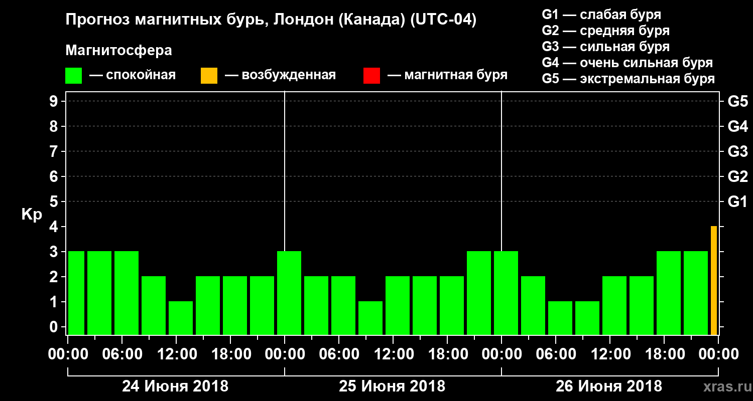 Прогноз магнитных бурь Лондоне (Канада) — 24 июня 2018 года