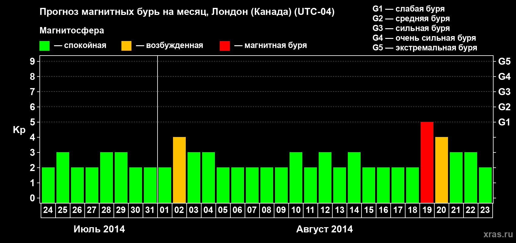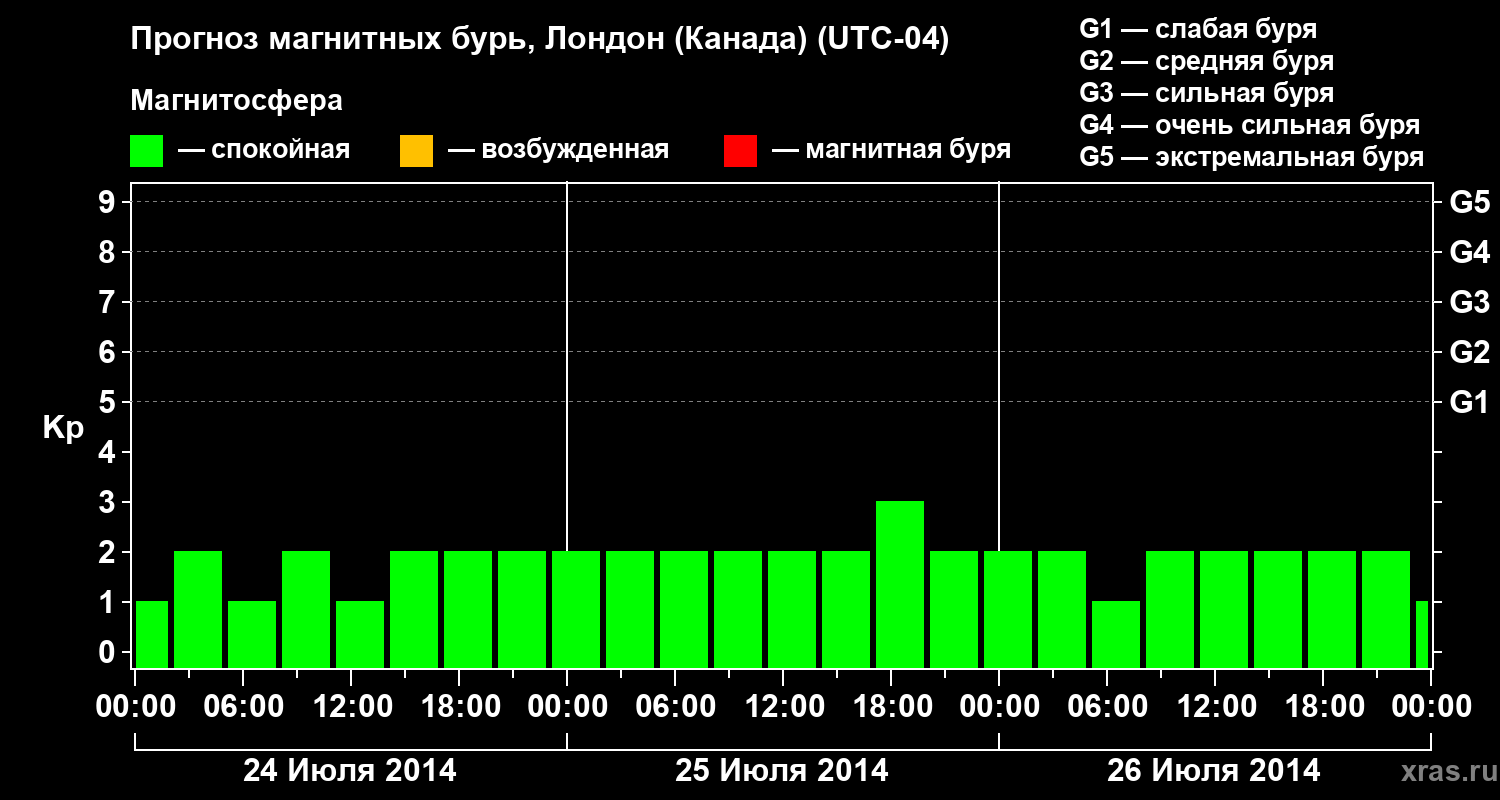Прогноз магнитных бурь Лондоне (Канада) — 24 июля 2014 года
