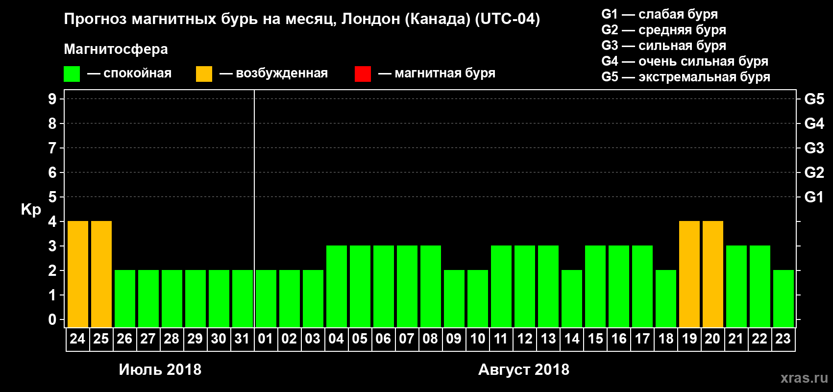 Прогноз магнитных бурь Лондоне (Канада) — 24 июля 2018 года