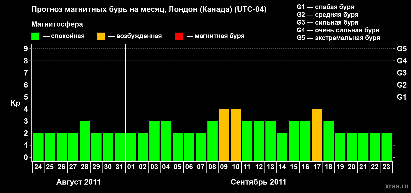 Прогноз магнитных бурь Лондоне (Канада) — 24 августа 2011 года