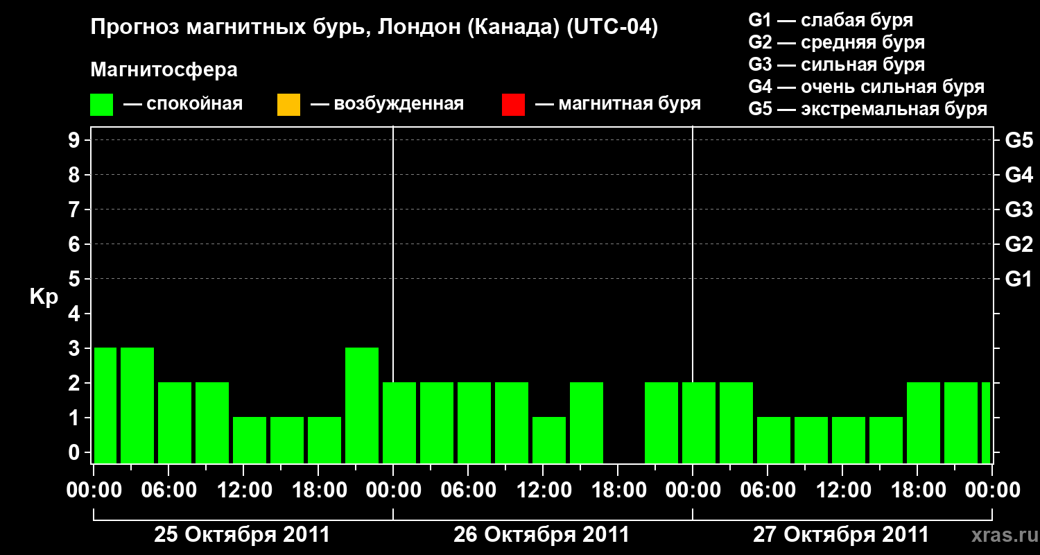 Прогноз магнитных бурь Лондоне (Канада) — 25 октября 2011 года