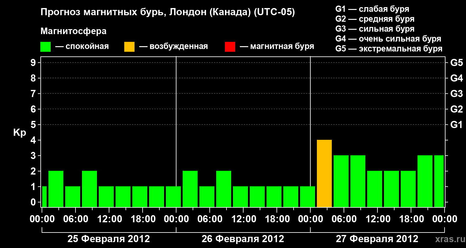 Прогноз магнитных бурь Лондоне (Канада) — 25 февраля 2012 года