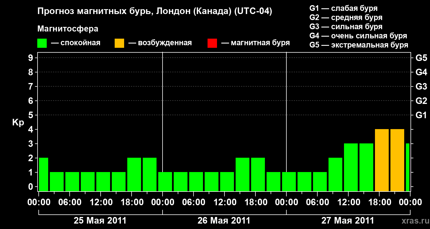 Прогноз магнитных бурь Лондоне (Канада) — 25 мая 2011 года