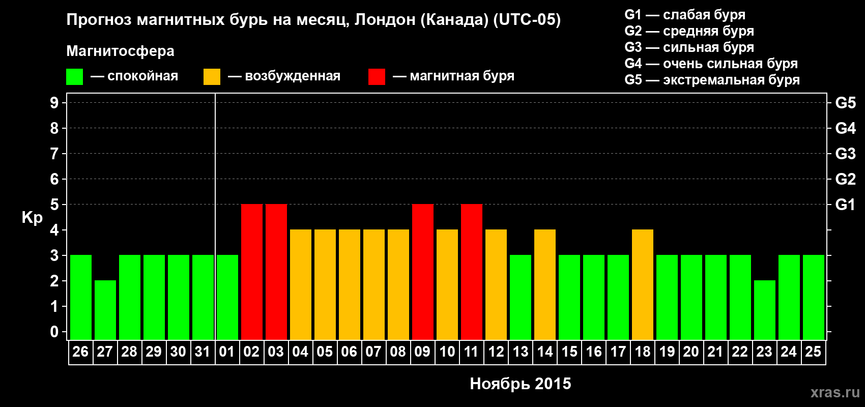 Прогноз магнитных бурь Лондоне (Канада) — 26 октября 2015 года