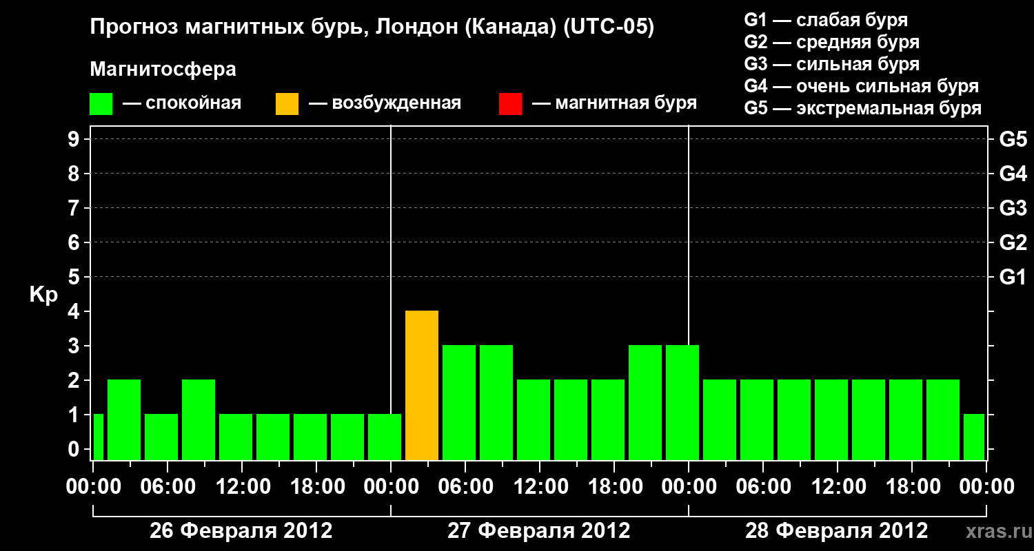 Прогноз магнитных бурь Лондоне (Канада) — 26 февраля 2012 года