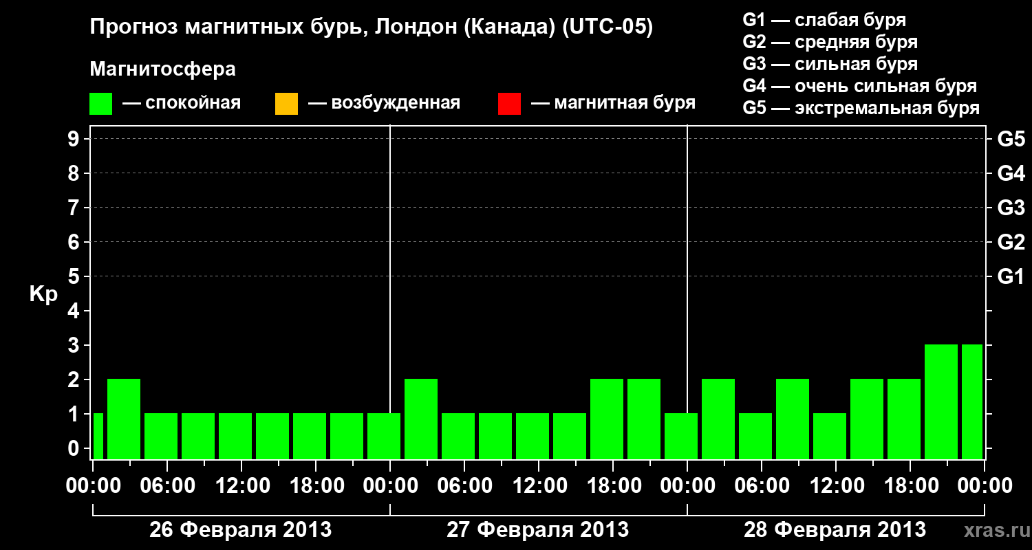 Прогноз магнитных бурь Лондоне (Канада) — 26 февраля 2013 года