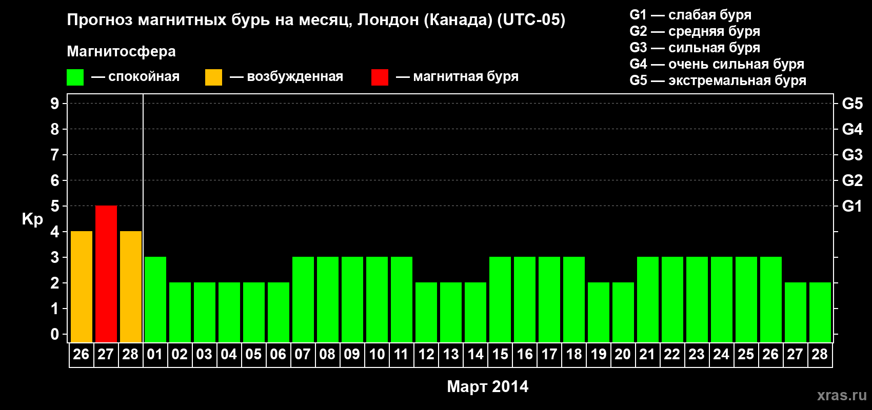 Прогноз магнитных бурь Лондоне (Канада) — 26 февраля 2014 года